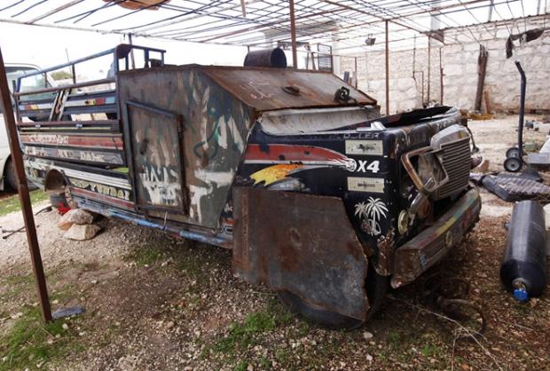 Một xe quân sự tự tạo có tên gọi Sham 1 của Quân đội Syria Tự do ở Khan Al Assal vào ngày 10-11-2012 (Ảnh: Reuters)