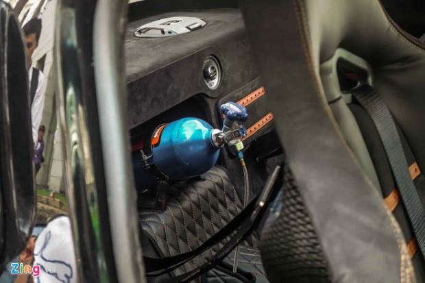 Bình NO2 được đặt phía sau xe. Đây là phụ kiện không thể thiếu trên những chiếc xe cơ bắp Mỹ nhằm đảm bảo khả năng tăng tốc nhanh nhất để vượt lên trên đối thủ.