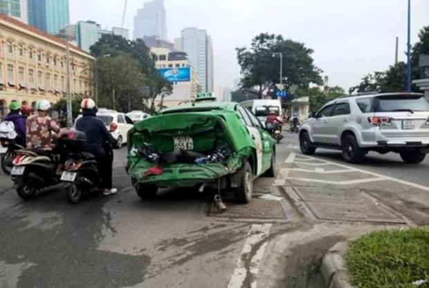 Cú tông mạnh khiến xe này tiếp tục lao về phía trước húc vào đuôi taxi (cùng hãng) mang BKS: 51F – 655.82 do tài xế Lê Tân Qui điều khiển, găm chặt vào đuôi xe bồn phía trước tạo nên chuỗi tai nạn. Vụ việc may mắn không thương vong về người, các phương tiện hư hỏng nặng nhiều phần.