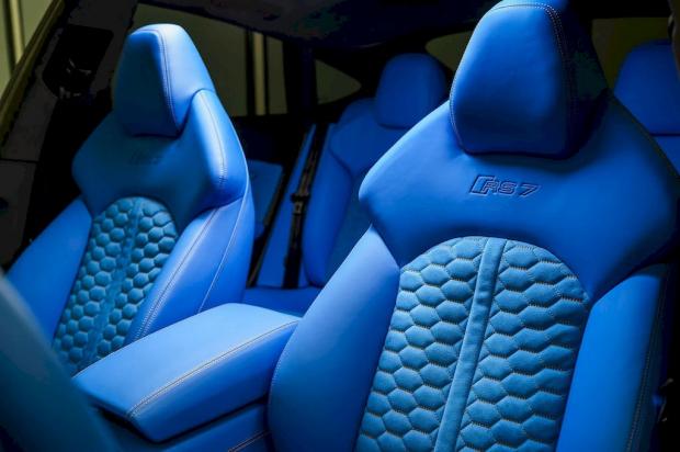 Audi cũng biến hoá khoang nội thất của RS7 nơi màu xanh Voodoo tiếp tục 'lên ngôi', cụ thể từ ghế...
