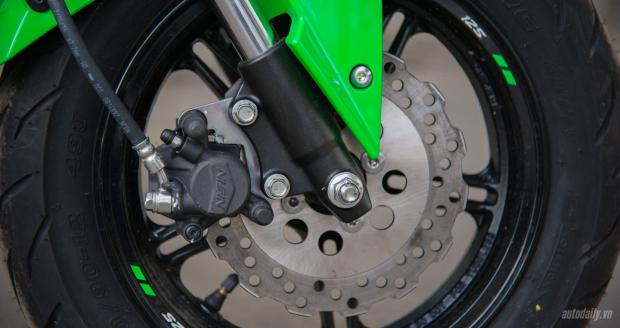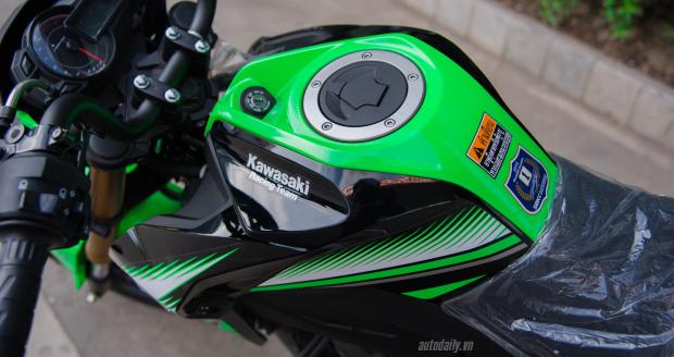 Ngoài ra, phía trên cụm đèn pha còn có sự xuất hiện của 2 sọc màu đen, dòng chữ “Kawasaki Racing Team” được gắn trên dè chắn bùn phía trước, phần ốp phía dưới yên xe cũng được trang trí bằng những đường vằn đen trắng đi kèm số 125. Cùng với đó, những chi tiết khác trên xe vẫn không có gì thay đổi so với phiên bản tiêu chuẩn.