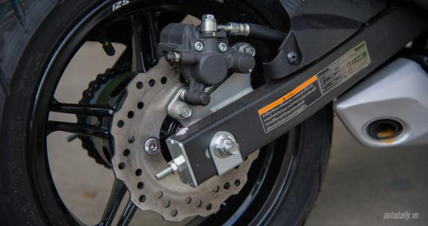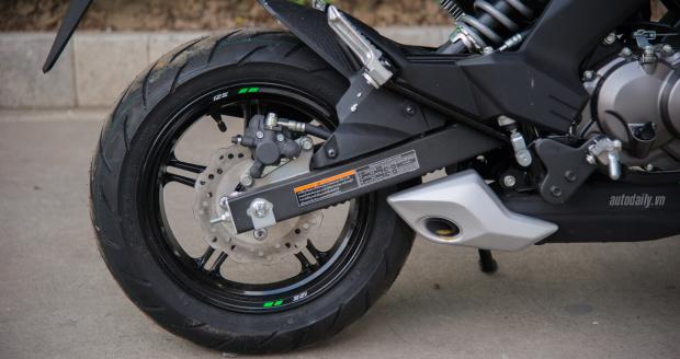 Xe được trang bị bộ mâm hợp kim, sơn đen, kích thước 12 inch, lốp sau có thông số 120/70, lốp trước 100/90, hệ thống ống xả đặt dưới gầm xe. Trang bị an toàn là hệ thống phanh đĩa đơn ở cả trước và sau với đĩa trước đường kính 200 mm trong khi phía sau là 184 mm. Chiều cao yên xe ở mức 780 mm.