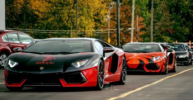 Dàn siêu xe trong đoàn năm nay chủ yếu là các phiên bản của dòng Lamborghini Aventador.