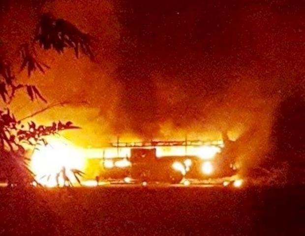 Chiếc xe khách nhanh chóng bị ngọn lửa bao trùm cháy như ngọn đuốc khổng lồ
