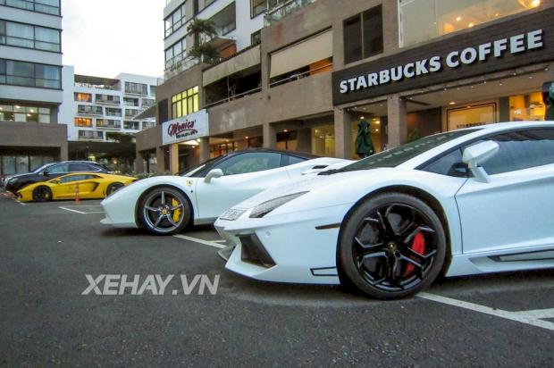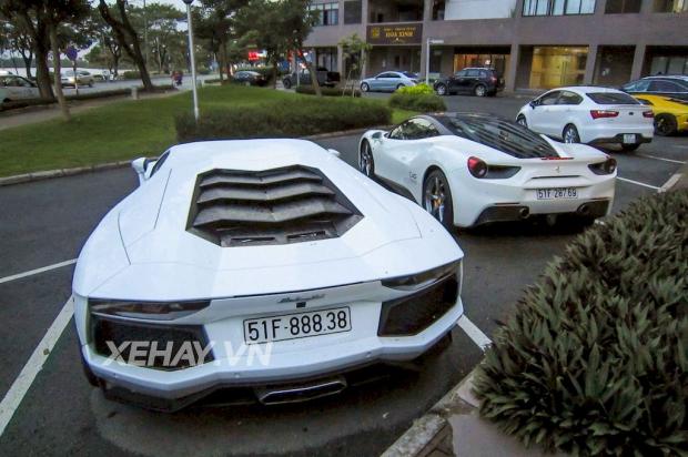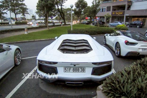 2 chiếc Aventador vàng và trắng thường được bắt gặp xuất hiện cùng nhau. Chiếc màu vàng là chiếc Aventador đầu tiên lăn bánh tại Việt Nam. Mới gần đây, xe chuyển sang màu ngoại thất trắng mờ bằng phương pháp dán decal.