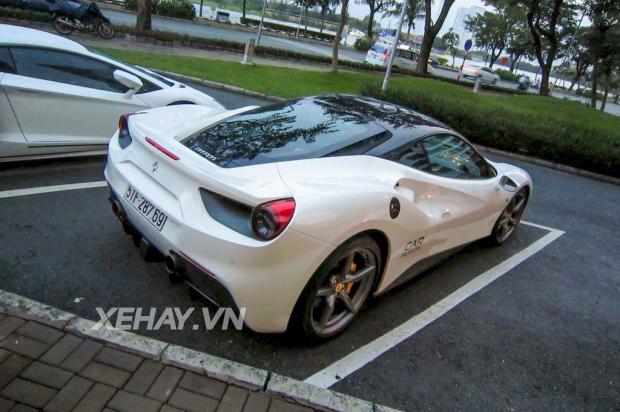 Ferrari 488 GTB của Cường Đô La là chiếc màu trắng đầu tiên có chủ tại Việt Nam. Xe từng được dán decal camo đặc biệt trước khi làm dâu nhà Cường.