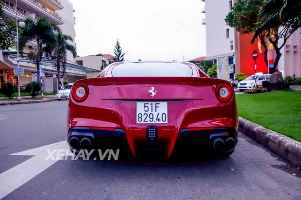 Siêu xe F12 này là chiếc duy nhất ở Việt Nam được can thiệp sâu về mặt vận hành. Xe độ ống xả Innotech có thể điều chỉnh âm thanh, bộ mâm HRE 22” và hệ thống nâng hạ gầm điện tử…