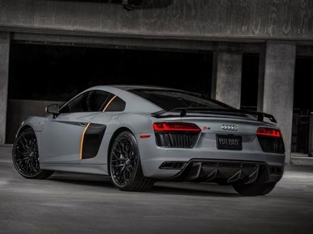 Phần thân xe được phủ một lớp sơn màu xám Quantum độc quyền của Audi, kết hợp với sọc màu cam làm từ chất liệu carbon trên các khe lấy gió. Xe cũng được trang bị bộ vành 20 inch phủ sơn màu đen bóng cùng hàng loạt chi tiết bằng sợi carbon như cản gió trước, bộ khuếch tán sau, vỏ gương ngoại thất và cánh gió cố định.