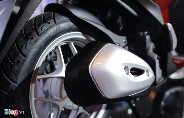 Xe sử dụng vành 10 chấu 16 inch trước và 14 inch sau, hộc đựng đồ 18 lít, dung tích bình xăng 5,5 lít.
