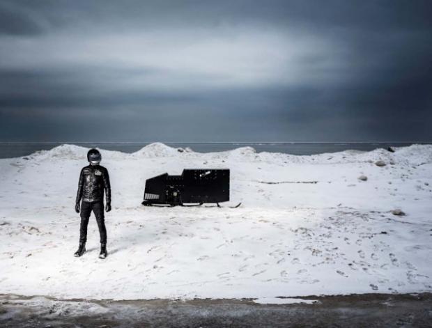 Phần đầu xe với thiết kế xe ngang cùng dải đèn LED ấn tượngSno Ped là sản phẩm của nhà thiết kế người Mỹ Joey Ruiter với điểm nhấn đặc biệt ở thiết kế thân vỏ vuông vức một cách quá đáng với lớp áo đen thui, cùng những chiếc đinh tán hầm hố kết nối các bộ phận cấu thành, khiến ta nghĩ ngay tới một thứ đồ chơi ưa thích của những kẻ phản diện sừng sở trong những bộ phim Hollywood. Sno Ped tỏ ra ăn ảnh trong bộ hình của Ruiter trong một chiều đông xám xịt đúng chất Hollywood Phần đầu xe với thiết kế xẻ ngang được trang bị hệ thống đèn chiếu sáng dạng LED là một trong những điểm nhấn lớn của thiết kế này. Bên dưới lớp thân vỏ ấn tượng này chỉ là khối động cơ 90cc, có lẽ sẽ không đủ để khiến bạn há hốc mồm thán phục nhưng đủ để thong dong trong những chuyến hành trình dài ngày giữa vùng băng tuyết hoang dã.