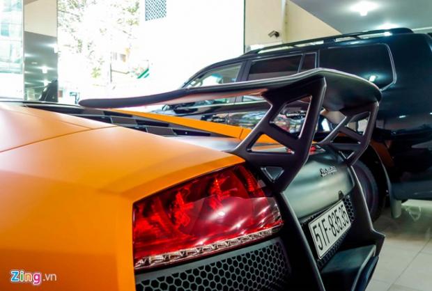 Những chi tiết đắt giá bằng sợi carbon như cánh gió và phần cản sau vẫn được giữ nguyên. Thân xe được khoác một lớp decal màu cam nhám.