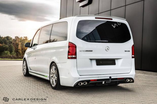 Về ngoại thất, Carlex Design cung cấp cho Mercedes-Benz Vito một dáng vẻ năng động hơn với cản gió thể thao ở phía trước, sườn xe cũng cứng cáp, chắc chắn hơn, bộ khuếch tán phía sau được làm mới cùng hệ thống ống xả tinh chỉnh đem đến một diện mạo hoàn thiện hơn so với nguyên bản.