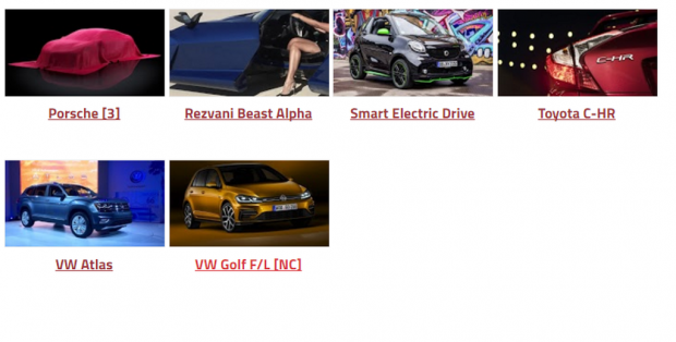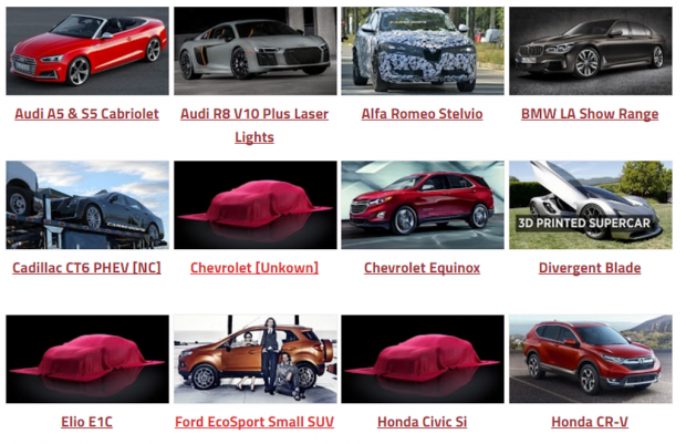 Trong số những mẫu xe sẽ ra mắt toàn cầu tại Los Angeles lần này có phiên bản SUV đầu tiên của Alfa Romeo, Chevy Equinox 2018, xe thể thao cỡ nhỏ Honda Civic Si động cơ tăng áp, và một phiên bản Subaru concept được cho là sẽ mở ra một dòng sản phẩm mới cho hãng xe Nhật Bản. Những mẫu xe lần đầu ra mắt Bắc Mỹ bao gồm Mercedes-AMG GT Roadster và Porsche Panamera thế hệ thứ hai.