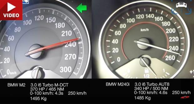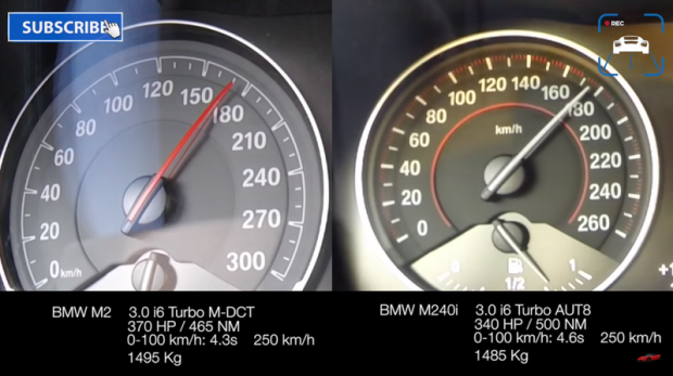 Việc này được giải thích rằng, khi khởi động M240i có ít điện năng hơn nhưng sau đó nhờ mô-men xoắn nhiều hơn tới 35 Nm nên xét về việc độ bền tốc độ thì BMW M240i vẫn vượt trội hơn so với M2.