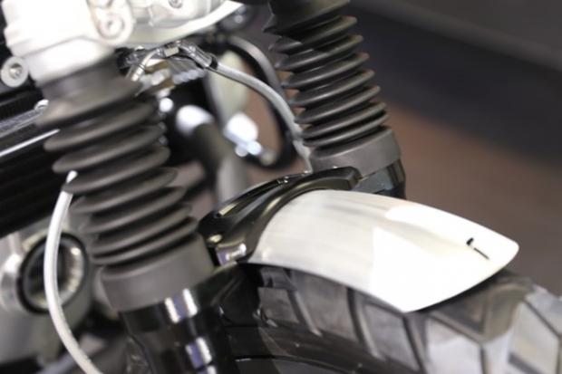 Miếng chắn bùn cho bánh trước đồng màu với các miếng ốp khác. Xe vẫn duy trì cặp phuộc hành trình ngược.