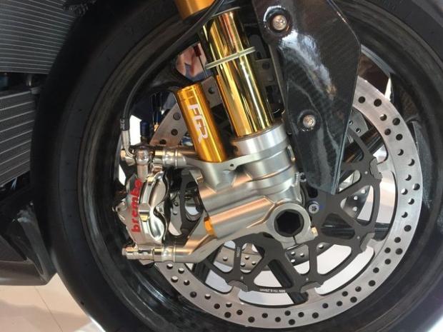 Khác với Ducati 1299 Superleggera, BMW HP4 Race đi kèm tay đòn bằng nhôm chứ không phải là sợi carbon.