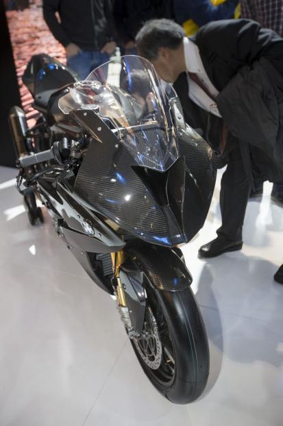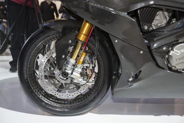 Chiếc BMW HP4 Race trưng bày trong triển lãm EICMA 2016 không chỉ có bộ khung và vành bằng sợi carbon.