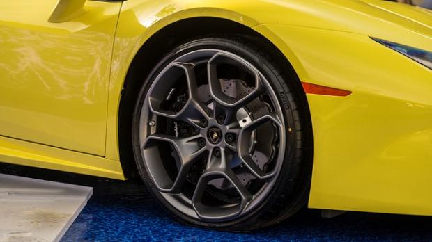 Xe sử dụng bộ vành Kari 19 inch cùng lốp Pirelli PZero thửa riêng cho dòng Huracan cầu sau.
