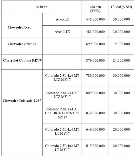 Đồng thời, từ ngày mùng 1 cho đến hết ngày 30/11, khách hàng khi mua các mẫu Aveo, Colorado, Orlando... của Chevrolet sẽ nhận ưu đãi từ 15.000.000 VNĐ cho đến 30.000.000 VNĐ.