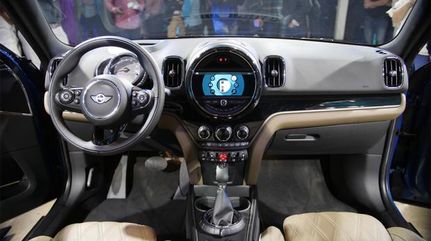 Về nội thất, Mini Countryman 2017 vẫn sở hữu không gian nội thất quen thuộc với cụm đồng hồ hiển thị các thông số động cơ được thu nhỏ lại. Tương tự, bảng điều khiển trung tâm là màn hình cảm ứng kích thước 8,8 inch. Màn hình cảm ứng này sử dụng điện toán đám mây Open Mobility Cloud, cho phép người lái kết nối với điện thoại hay đồng hồ thông mình của Apple và đi kèm tính năng định vị vệ tinh.