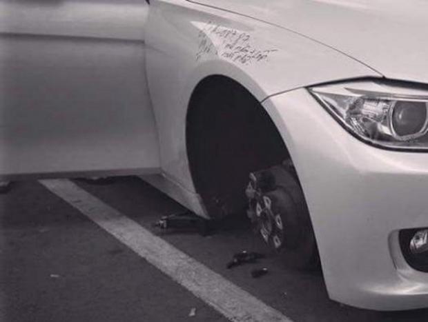 Theo đó, vào khoảng 6h sáng cùng ngày, anh V.X.L. từ bệnh viện ra lấy xe về thì phát hiện chiếc BMW đỗ tại bãi đỗ xe taxi trong khuôn viên của bệnh viện bị mất mâm và bánh trước.