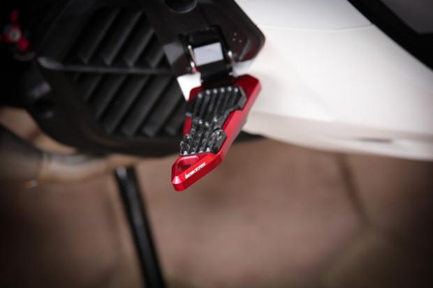 Bộ tay nắm và gù xe nguyên bản được thay bằng đồ của Rizoma và tay phanh Biker với 6 cấp điều chỉnh.