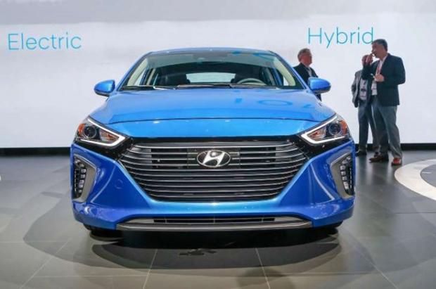 Mẫu xe IONIQ 2017 chạy bằng điện của hãng xe Hyundai tại triển lãm Los Angeles Auto Show 2016.