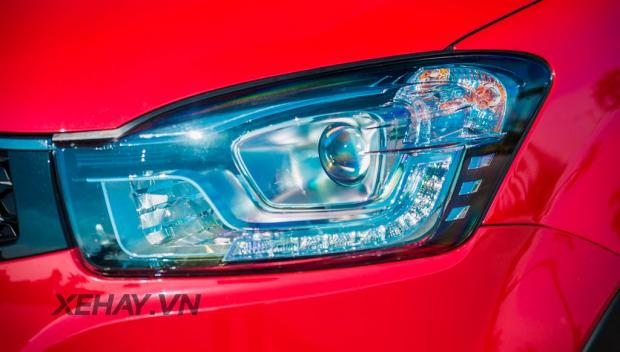 Điểm nhấn của xe nằm ở những đường gân dập nổi trên nắp capo cùng lưới tản nhiệt sơn đen đi kèm cụm đèn pha HID kêt hợp đèn LED ban ngày được vuốt ngược về phía sau ở phần đầu xe
