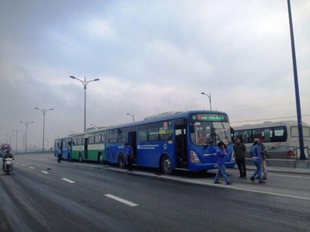 Cú tông mạnh khiến xe buýt số 56 tiếp tục lao về phía trước húc vào đuôi xe buýt số 104 mang BKS: 51B - 172.45 khiến 3 phương tiện dính chùm trên cầu. Vụ việc khiến hàng trăm hành khách trên 3 xe hốt hoảng, la hét.