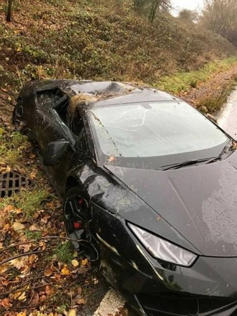 Chiếc Lamborghini của Schlupp biến dạng vì tai nạn