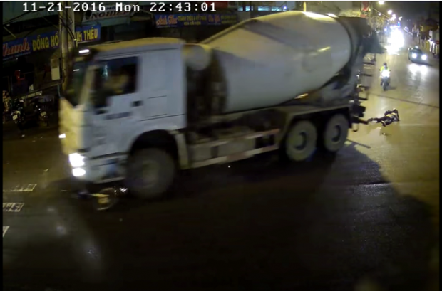 Chiếc xe máy bị kẹt ở cản trước xe bồn và bị lôi đi hàng chục mét nhưng chủ xe thì may mắn lọt qua gầm. Cao trào của vụ việc là khi thanh niên tập tễnh đứng dậy với chiếc mũ bảo hiểm còn nguyên và tập tễnh đi vào lề đường trước sự chứng kiến của người tham gia giao thông xung quanh.