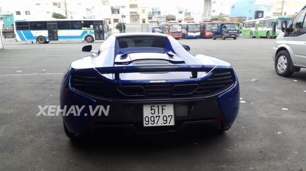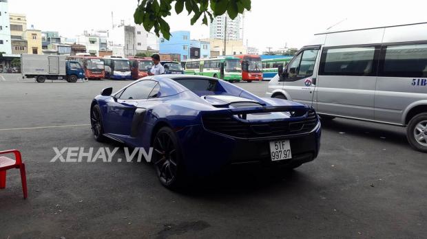 Sau khi đeo biển, McLaren 650S Spider không chỉ thu hút ánh nhìn bởi màu sắc 'kịch độc' mà còn gây chú ý với biển số đẹp cực chất '51F 997.97'. Dường như đại gia này rất có duyên với con số 9 và 7 khi chiếc McLaren 650S Spider màu cam trước đó cũng sở hữu biển kiểm soát '51F 979.79'.