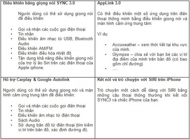 Một ưu điểm nữa SYNC 3 vượt trội hơn so với “đàn anh” là khả năng nhận dạng giọng nói “siêu việt” khi nó có thể hiểu được các khẩu âm theo từng vùng thị trường tốt hơn. Các câu lệnh cứng nhắc có sẵn vốn làm khó người tiêu dùng nay đã được nâng cấp ở SYNC 3 bằng những câu lệnh tự nhiên thường ngày, giúp cho việc kết nối người-xe chưa bao giờ trở nên dễ dàng như thế.