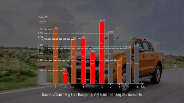 Doanh số bán hàng của Ford Ranger tại Việt Nam 10 tháng đầu năm 2016