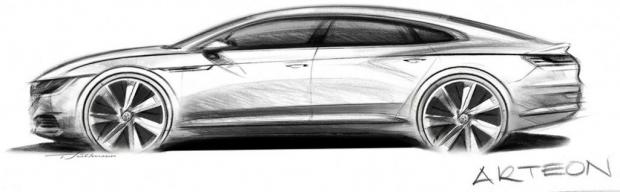 Nếu bạn thấy bản phác thảo này trông quen quen, đó là vì về cơ bản Volkswagen Arteon là phiên bản sản xuất của Sport Coupe Concept GTE, mẫu xe được biết đến sau khi những hình ảnh bằng sáng chế của phiên bản mới bị rò rỉ hồi tháng Tám. Đầu xe với lưới tản nhiệt lớn và các thanh đòn được mở rộng về phía đèn pha ba chiều vẫn được giữ lại.