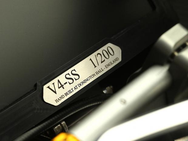 Bên cạnh đó cả 2 phiên bản điều khoe thân bằng sợi carbon siêu nhẹ, ở phiên bản V4 RR được phủ bằng lớp sơn chrome bạc đặc biệt sáng bóng đầy nổi bật, còn ở phiên bản V4 SS lại thể hiện vẻ ngoài hấp dẫn hơn với những sợi carbon 3D đầy tinh tế. Xe có chiều dài cơ sở là 1.430 mm và được trang bị bình xăng 18 lít bằng sợi carbon.