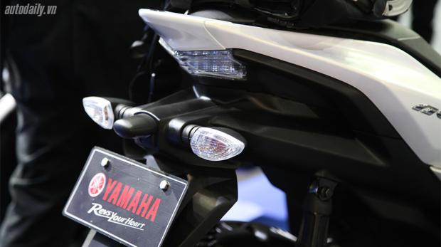 Phía trước là cụm đèn pha LED được lấy cảm hứng từ mẫu môtô YZF-R3, kết hợp với 2 đèn định vị nằm hai bên dưới cùng với đèn xi-nhan được đặt ở phần yếm.