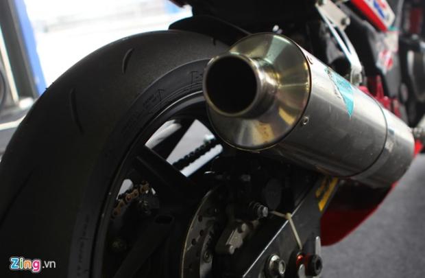Ống xả Endurance Racing chính hãng cũng được trang bị cho mẫu Honda CBR250R phiên bản xe đua. Cặp lốp Dunlop đặc chủng với lốp trước 110/70 và lốp sau 140/70.
