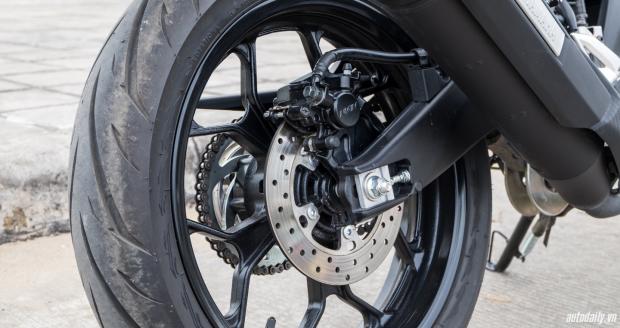 Dè sau tách rời với đuôi xe và được cố định thông qua thanh sắt nằm ẩn bên dưới mang đậm chất thể thao, nhưng vẫn không tránh khỏi chuyện người ngồi sau phải chịu cảnh “dính” bùn sình và đất cát. Ngoài ra, tay nắm sau được thiết kế nằm gọn dọc hai bên dưới ốp nhựa phần đuôi xe nên cũng gây bất tiện trong việc dắt và nhấc xe lên. Ống xả có thiết kế thể thao được ốp nhựa giả vân carbon tạo cảm giác cao cấp.