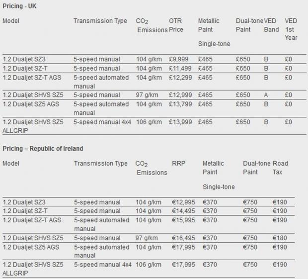 Khách hàng có thể chọn hộp số sàn năm cấp hoặc hộp số tự động năm cấp, và cũng có thể chọn hệ dẫn động bốn bánh ALLGRIP của thương hiệu, nhưng chỉ dành cho phiên bản cấp độ SZ5, tăng giá thêm 200 bảng (6 triệu VNĐ) so với giá khởi điểm.