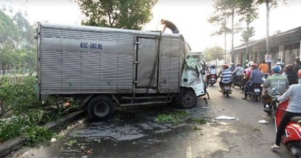Thông tin ban đầu, khoảng 3h40 rạng sáng 7/12, xe tải mang BKS: 61C - 107.91 do nam tài xế khoảng 30 tuổi điều khiển, chạy trên đường Hoàng Sa hướng từ quận Tân Bình về quận 3. Vừa qua cầu số 5 khoảng 200m thuộc phường 11, quận 3 thì bất ngờ chiếc xe chao đảo rồi lao sang trái, húc ngã 2 cây xanh rồi lật nhào.