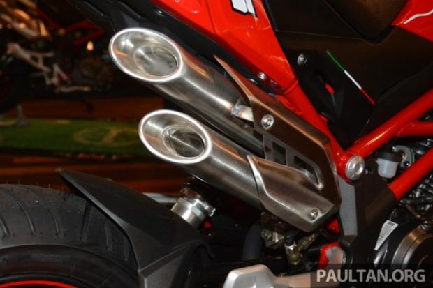 Bên dưới yên xuất hiện ống xả thể thao khá đẹp mắt và gợi liên tưởng đến loại trên MV Agusta Brutale 800.