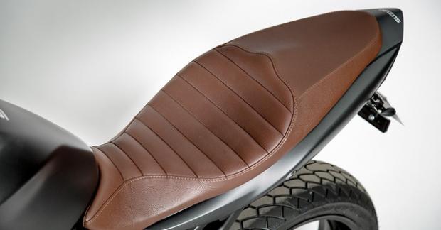 ... và yên bọc da màu nâu. Bên cạnh đó là kính chắn gió và đèn xi-nhan cỡ nhỏ.