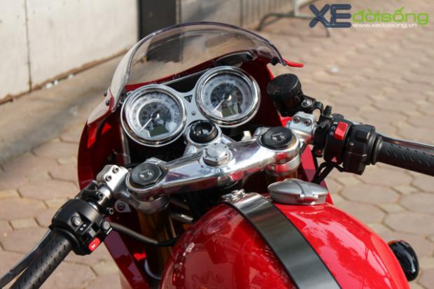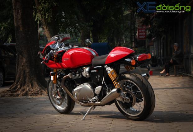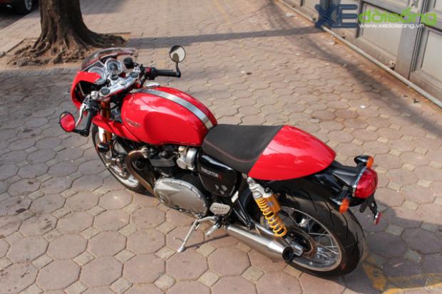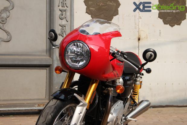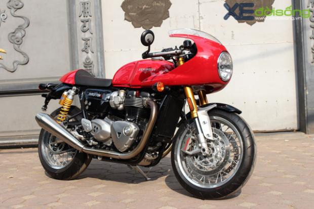 Chiếc xe trong bài viết là Triumph Thruxton 1200R 2016 thứ hai mà showroom Đức Quảng Ngãi ở Hà Nội nhập về nhưng là chiếc độ bộ kit Front Farring Diablo Red đầu tiên ở Việt Nam.