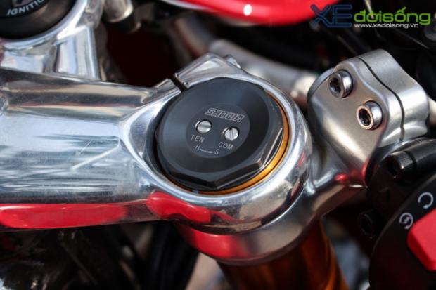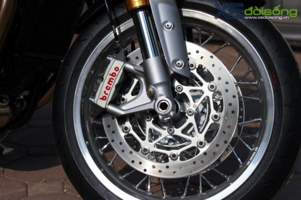 Ngoài chi tiết nâng cấp chính hãng, chiếc xe vẫn dùng cặp bánh căm cổ điển đường kính 17 inch và sử dụng lốp thể thao Pirelli Diablo Rosso Corsa với hệ thống phanh đĩa kép bánh trước và đĩa đơn phía sau sử dụng heo Brembo cao cấp cùng phuộc up-side-down trước từ Showa và thụt sau từ Ohlins.