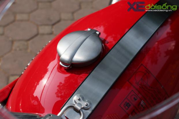 Điểm nhấn trên thân xe là bình xăng lớn kéo dài ra phía sau với dải nhôm kim loại trang trí dọc bình xăng.