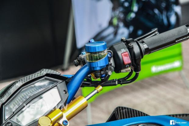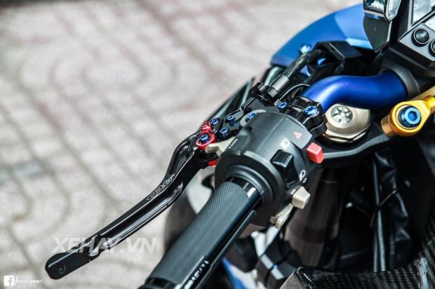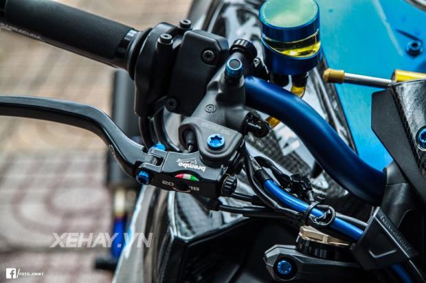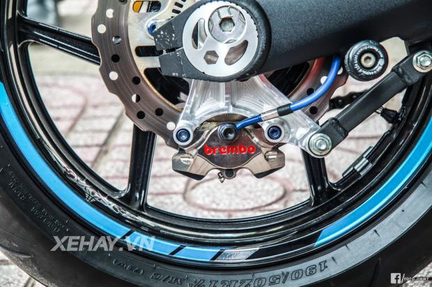 Ngoài ra, xe còn sử dụng khá nhiều đồ chơi như cùm thắng Brembo RCS, cùm côn CRG Raceline, trợ lực lái Hyper Pro thể thao, heo dầu trước Brembo GP4RX, heo dầu sau Brembo Billet cùng bộ Rear Set Version R của Lightech.