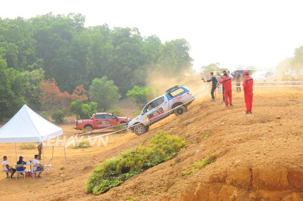Bài 2: Chạy hố bập bênh, cua vòng số 8. Đây là bài offroad đầu tiên nên tất nhiên độ khó chỉ ở mức vừa phải. Bài số 2 là thử thách khá “vừa miếng” đối với những người lần đầu tiên chạy trên địa hình bùn đất. Tuy nhiên, chỉ một sai lầm là cũng đủ để vận động viên tuyên bố bỏ bài và gọi xe cứu hộ.