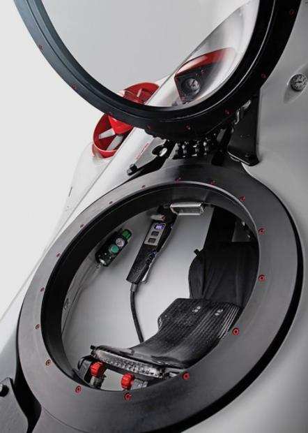 Hệ thống xử lý áp suất của Aquahoverer có khả năng đưa hành khách xuống độ sâu 120 m nhưng vẫn tạo cảm giác dễ chịu với ghế ngồi được làm bằng sợi carbon cao cấp.