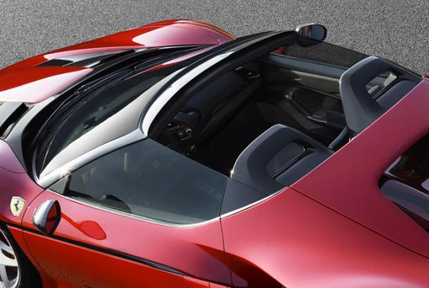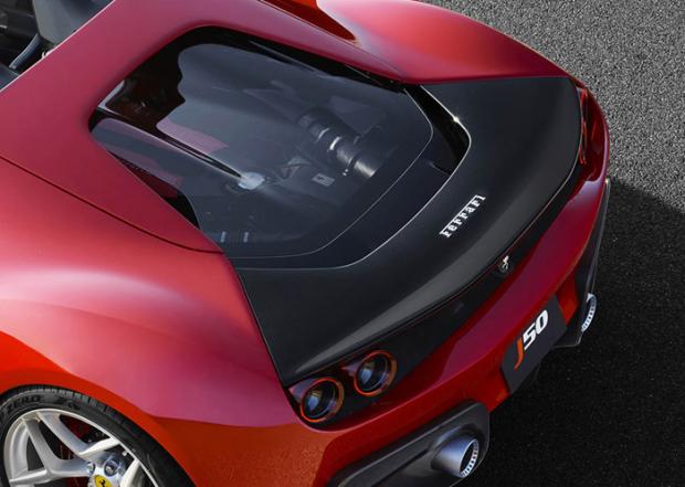 Ở phía sau chiếc J50, bố cục phần ống xả gần giống như 488 Spider nhưng đèn hậu lại áp dụng mô típ cổ điển của Ferrari với cặp đèn hậu tròn cân xứng mỗi bên.